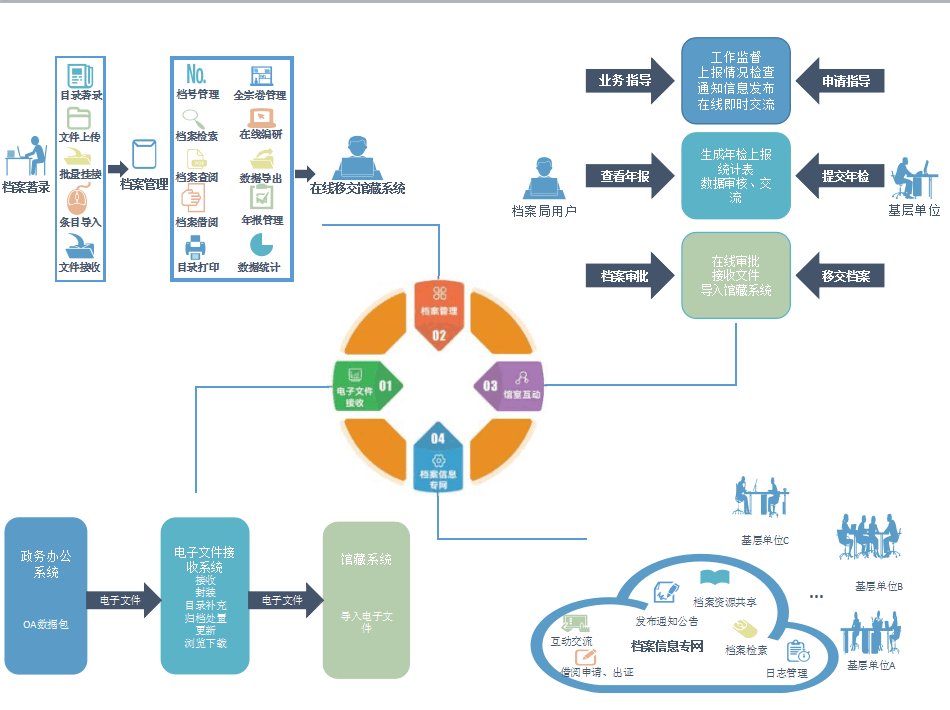 融合網(wǎng)上監(jiān)督指導、在線年檢、在線移交進館、網(wǎng)上課堂等功能。